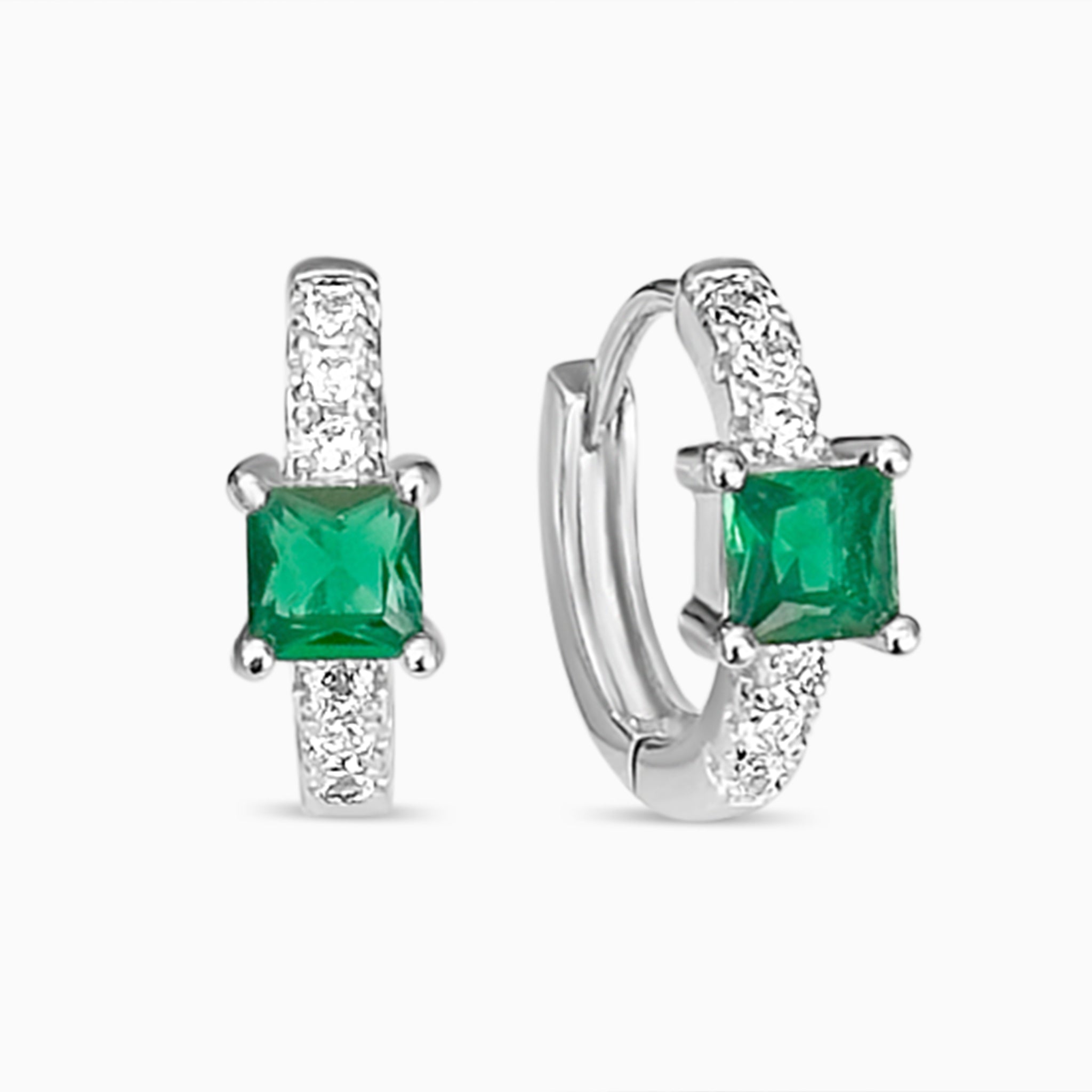 Silver & Emerald Huggie