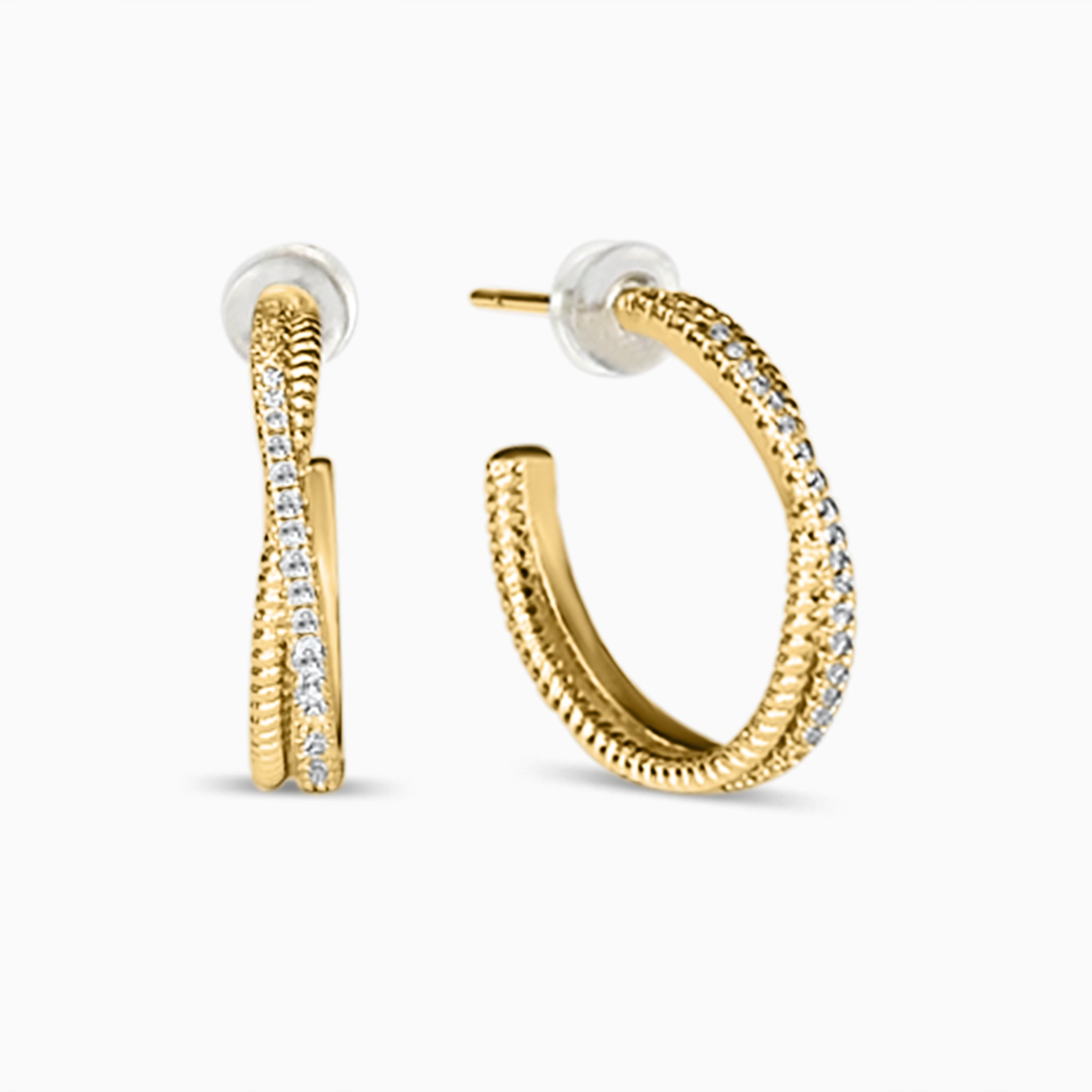 Criss Cross Micro Pave & Gold Mini Hoop Earrings