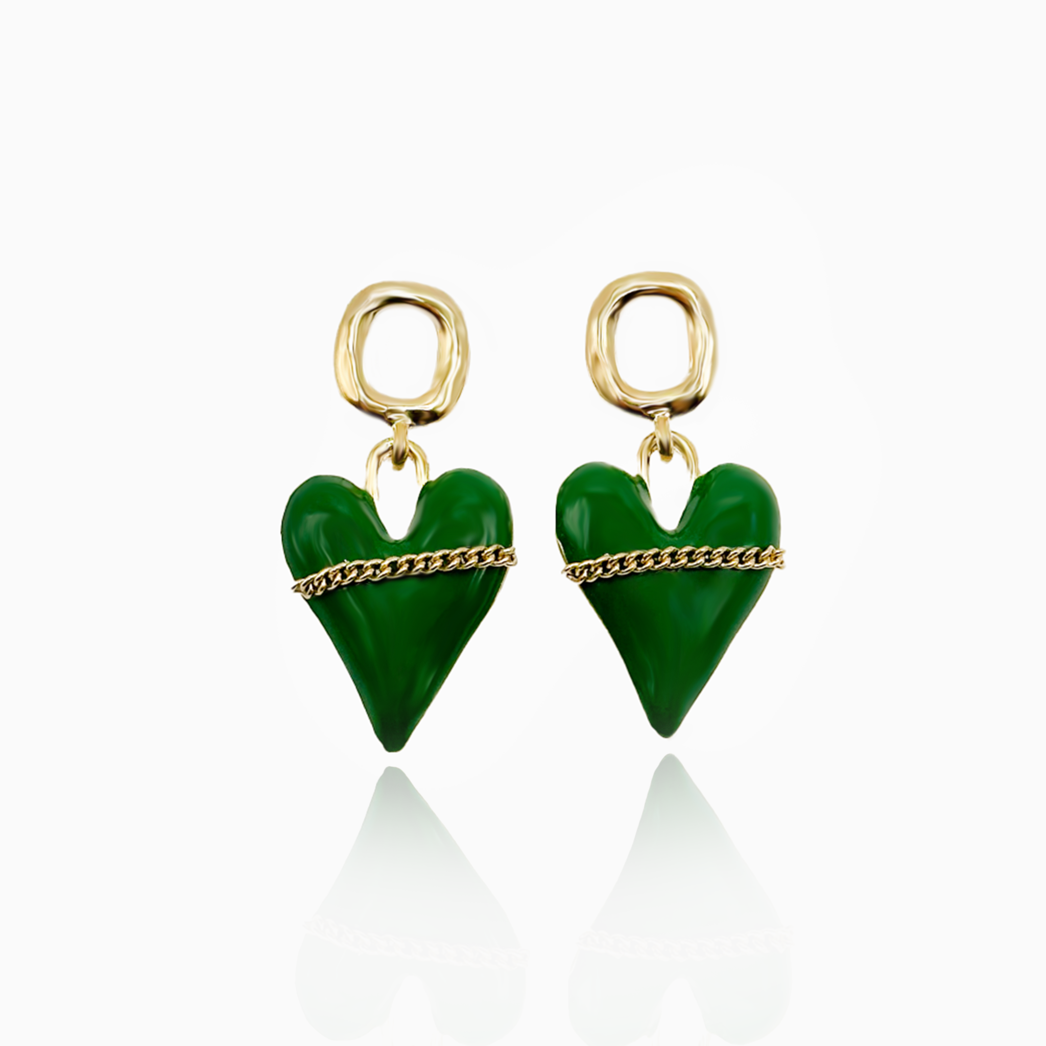 Green Heart Chain Earrings