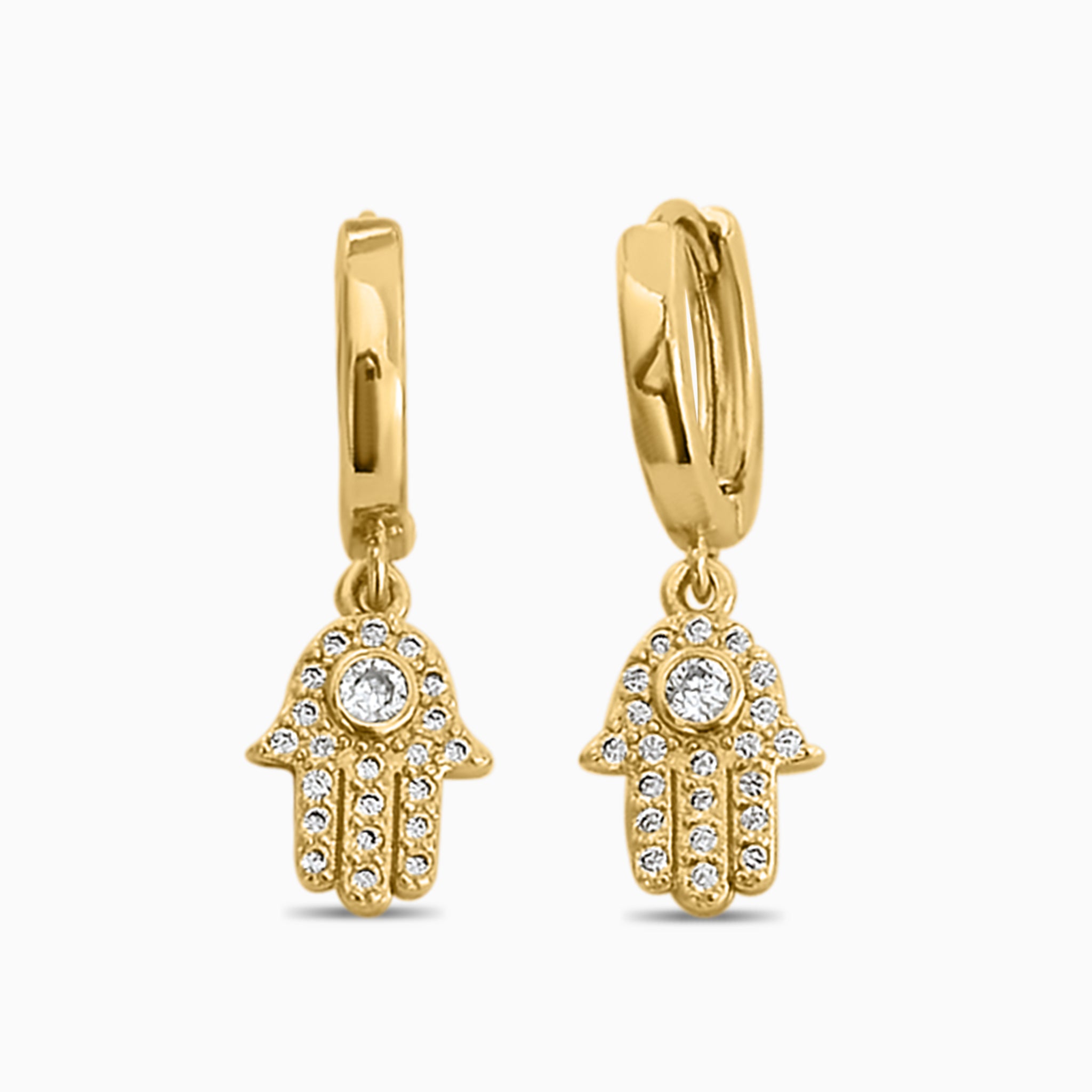 24K Gold Filled CZ Micro Pave Hamsa Huggie Earrings