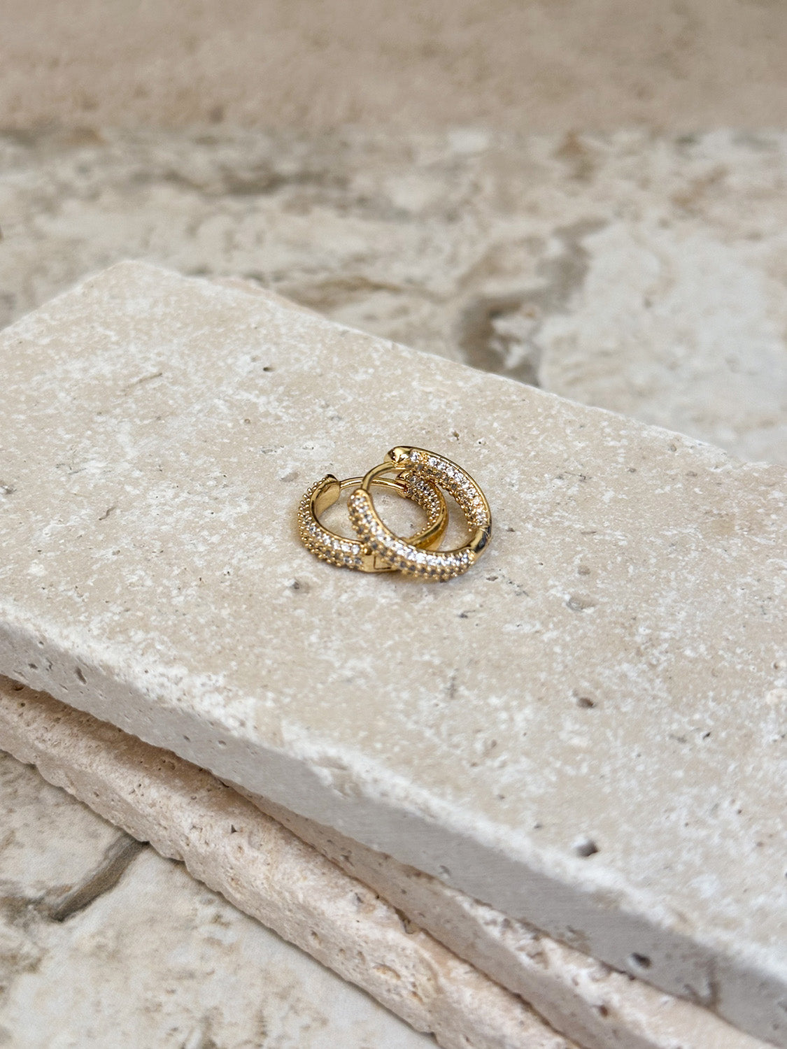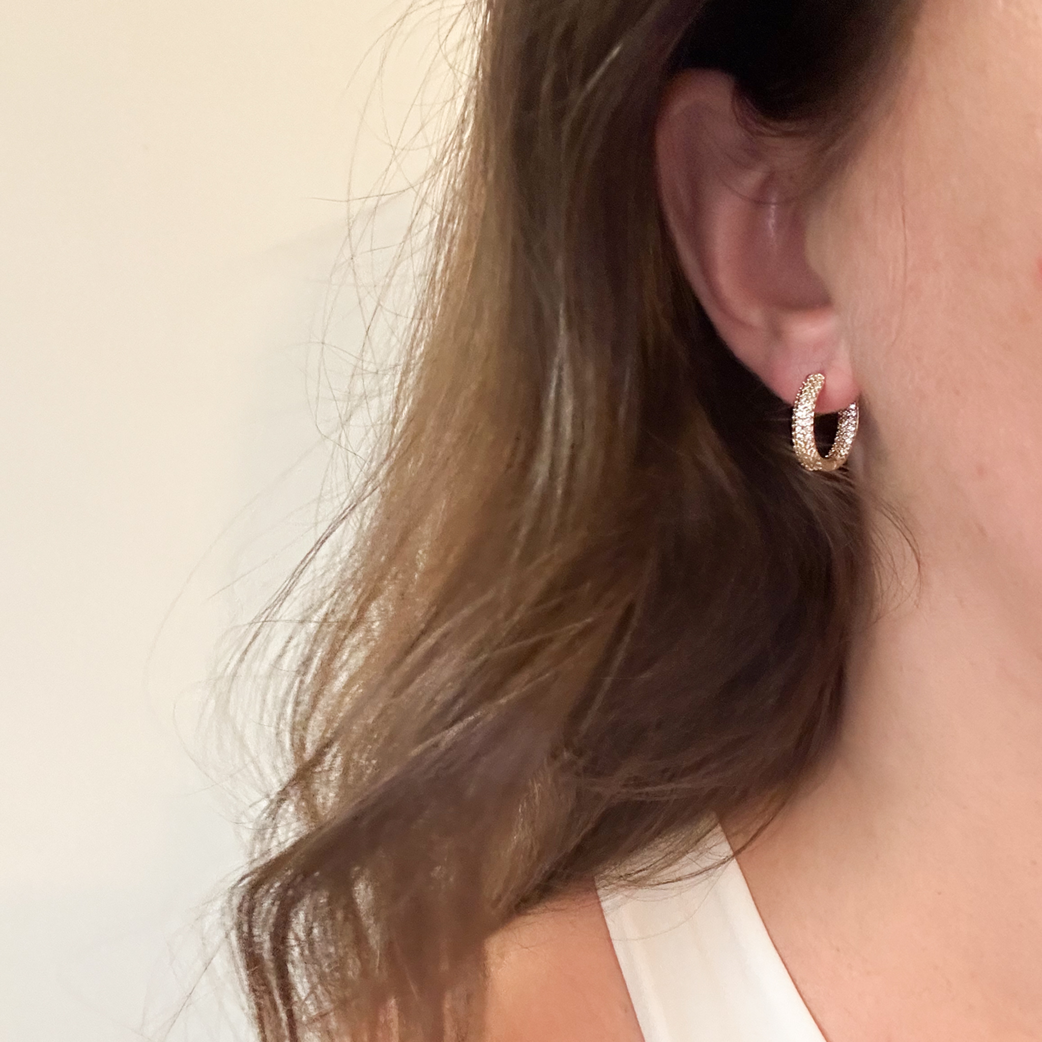 18K Gold Filled Round CZ Micro Pave Huggie Earrings